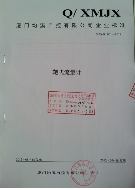靶式流量計企業(yè)標準