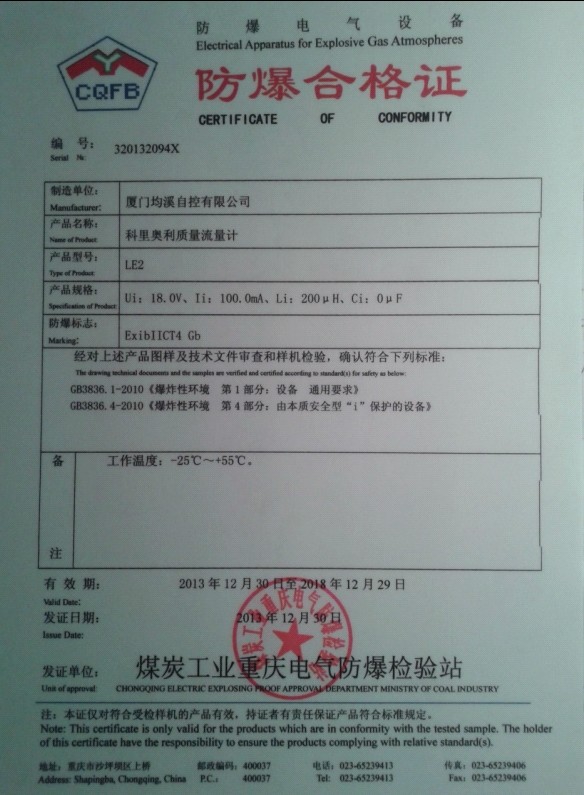 靶式流量計隔爆型檢驗報告